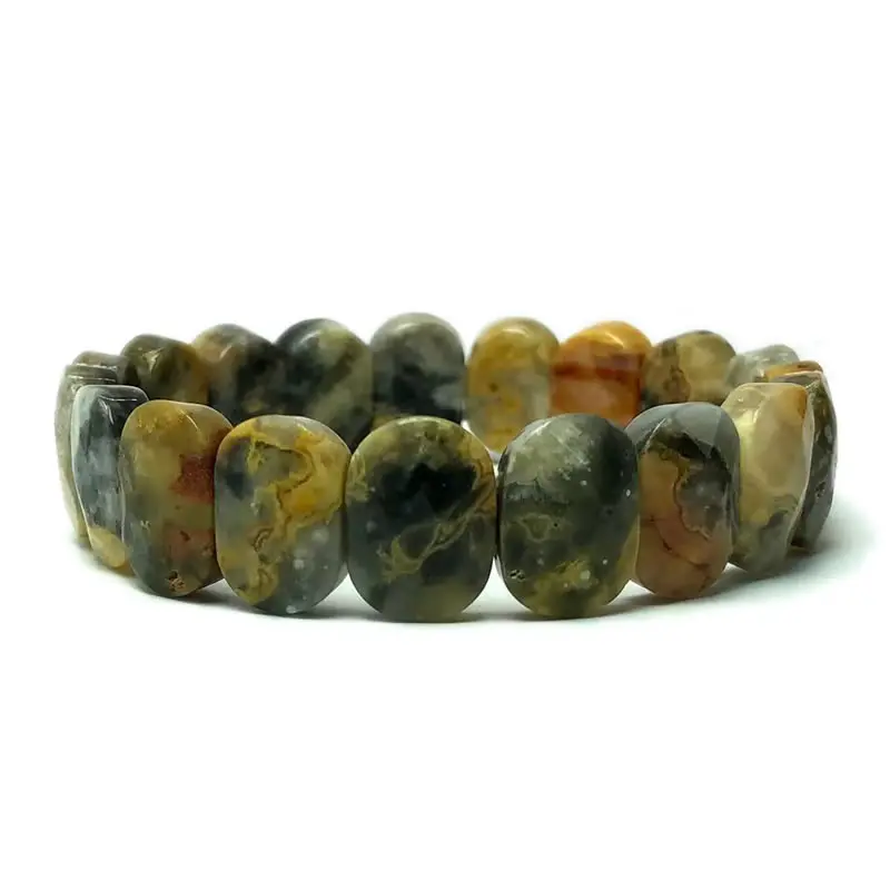 From calming blues to vibrant greens and fiery oranges, every piece showcases unique patterns and colors—meaning no two bracelets are exactly alike.