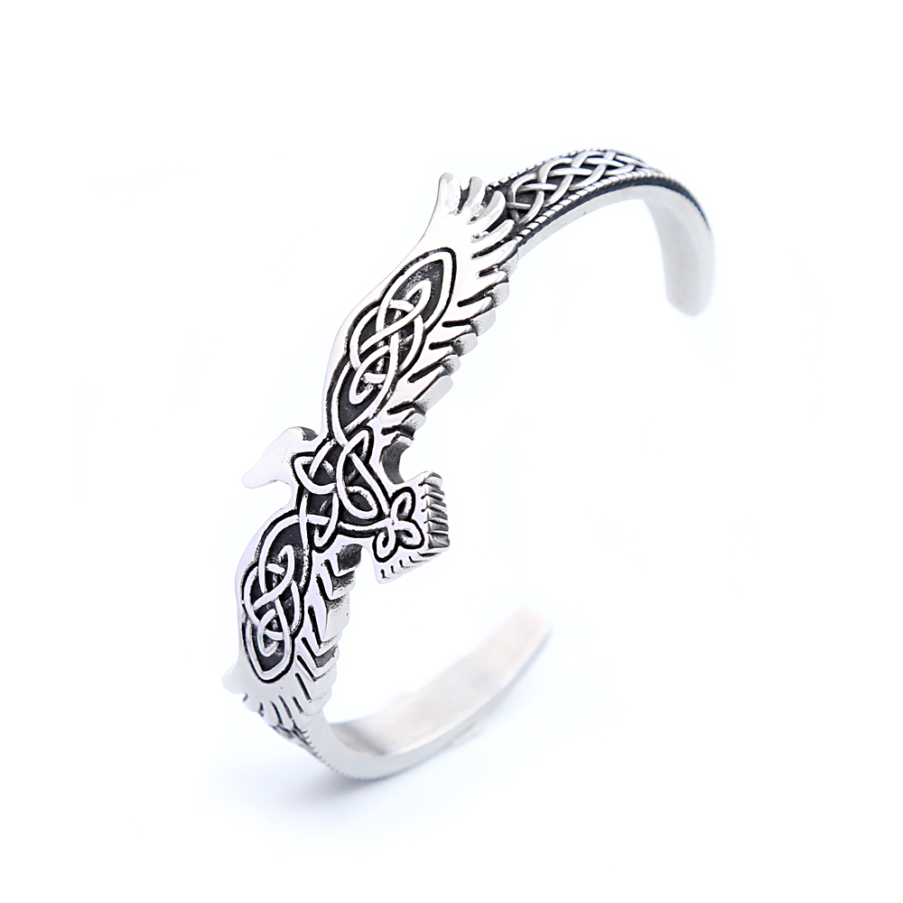 Name: Vintage Viking Stainless Steel Raven Eagle Bracelet For Men Women Fashion Celtic knot Bracelet Opening Adjustable Jewelry Gifts